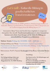 Dialogworkshop zum Thema “Transformative Impluse migrantischer Organisationen als Akteur*innen der Kulturellen Bildung – an der Schnittstelle von Schule und Sozialraum”